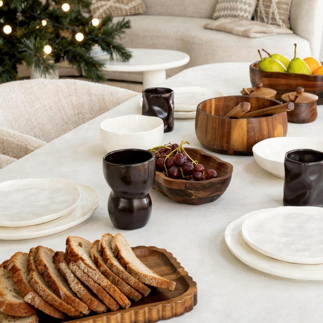 Verschenke schadstofffreie und stilvolle Glasdosen, Akazienholz-Produkte (ab 8€) oder Geschirrsets für Gastgeber.