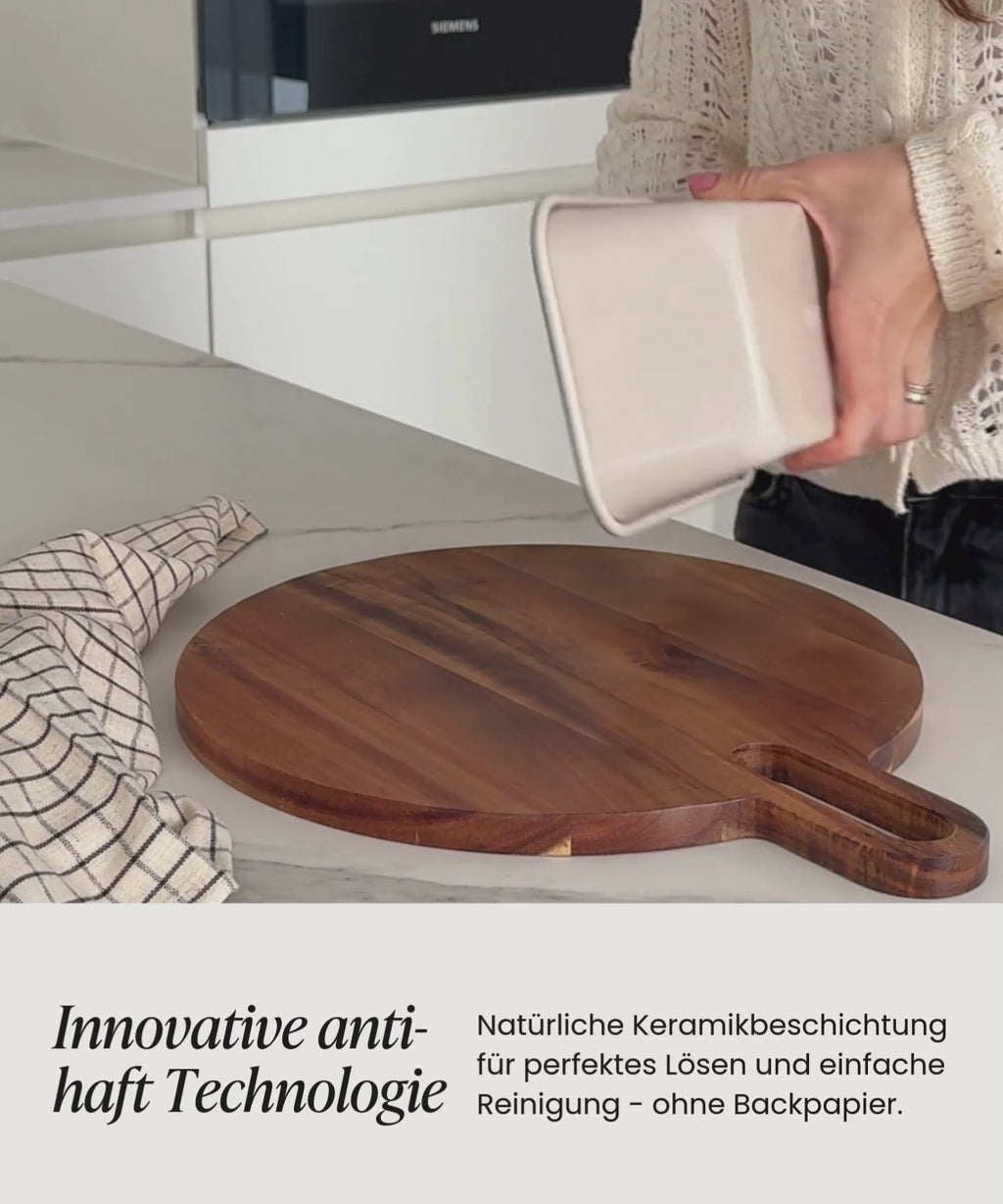 Die rechteckige Kastenform mit innovativer Antihaft-Keramikbeschichtung sorgt für perfekte Ergebnisse – ganz ohne Backpapier und mit deutlich weniger Öl. Ideal für saftiges Bananenbrot, klassische Kastenkuchen oder herzhafte Brote. Kein Ankleben, keine Rückstände, einfach backen und genießen.